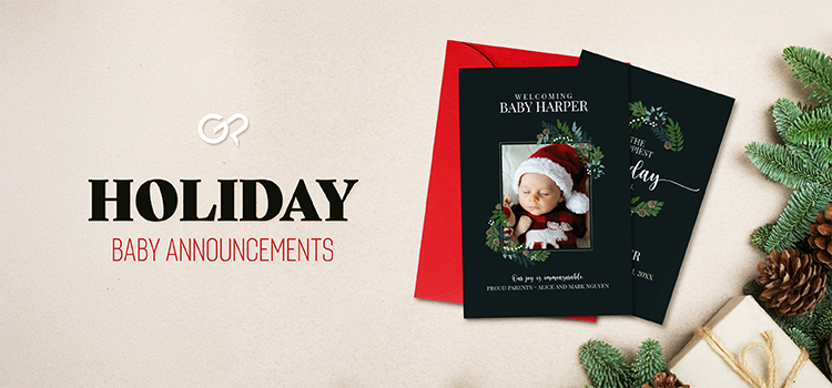 Combine your family holiday card and birth announcement in one custom postcard. Use GotPrint’s guide to design holiday birth announcement cards to share the good news with your loved ones.